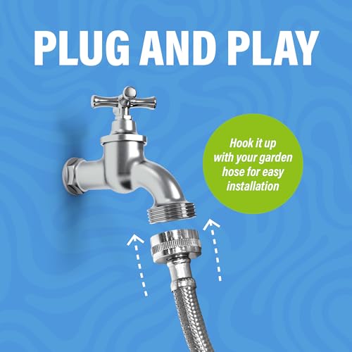 - A compact easy to clean automatic filling water bowl with 10' long exterior high strength hose